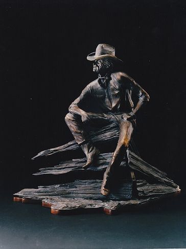 Cowboy on Fence in Bronze